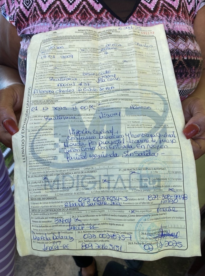 De acuerdo con el informe, el adolescente falleció la mañana del lunes 1 de diciembre del 2025 en un centro de salud, luego de haber resultado herido en un confuso incidente registrado el domingo anterior en un terreno donde se construía una cancha municipal en dicha comunidad.