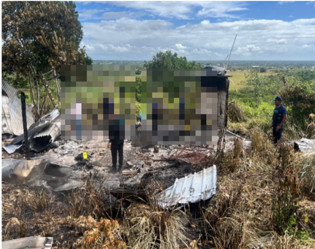 En el área afectada se encontraron los restos completamente calcinados de la vivienda, con gran parte del material estructural reducido a cenizas, escombros quemados y láminas metálicas deformadas por el intenso calor. La residencia se encontraba en una zona de difícil acceso y poco transitada.
